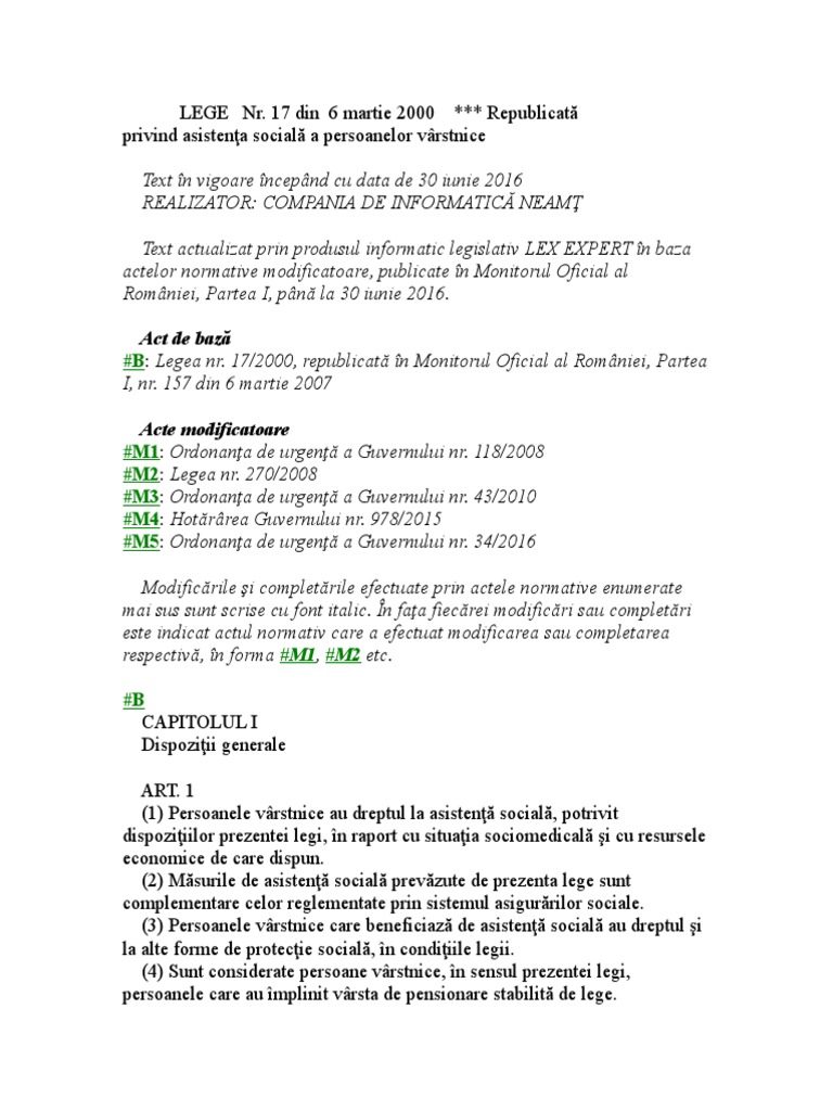 vizitati articolul complet aici : 2 Începând cu 21 decembrie 2018, atribuțiile privind desemnarea procentuală au trecut de la ministerul justiției către agenția servicii publice, tel. Toate articolele cu referire la subiectul 'legea 17/2000'. 17/2000, republicată în monitorul oficial al româniei, partea i, nr.