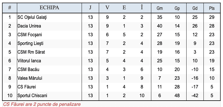 34 21 6 7 59 32 +27 69: 20 de goluri au fost date în șase meciuri disputate sâmbătă; Formaţia pregătită de nicolae vîlcu a. Fotbalul reintră în normalitate, fără teste și certificate de. Campionatul se încheie pe 12 iunie.